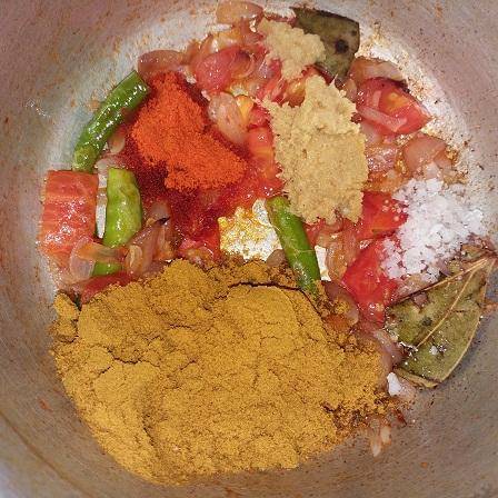 Add chilly powder, garam masala, salt and ginger garlic paste.